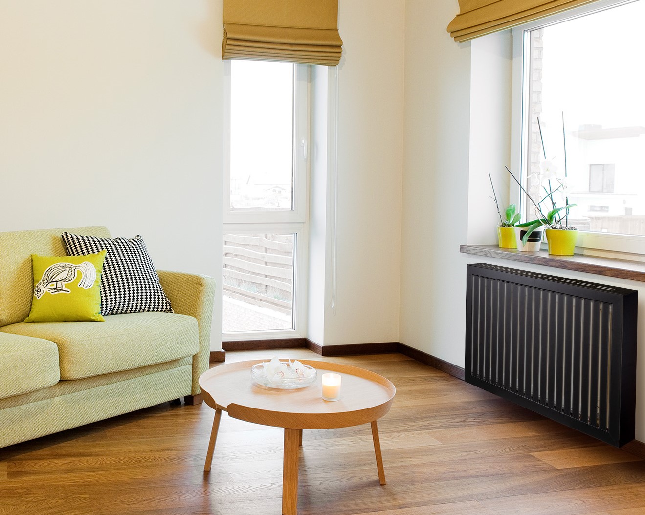 Изготовлен из экологичного и высококачественного МДФ, не деформирующимся под воздействием высоких температур. Теплоотдача остается на том же уровне, что до установки экрана. Устанавливается на высоту не менее 35 мм от радиатора и 60мм от пола и подоконника.
