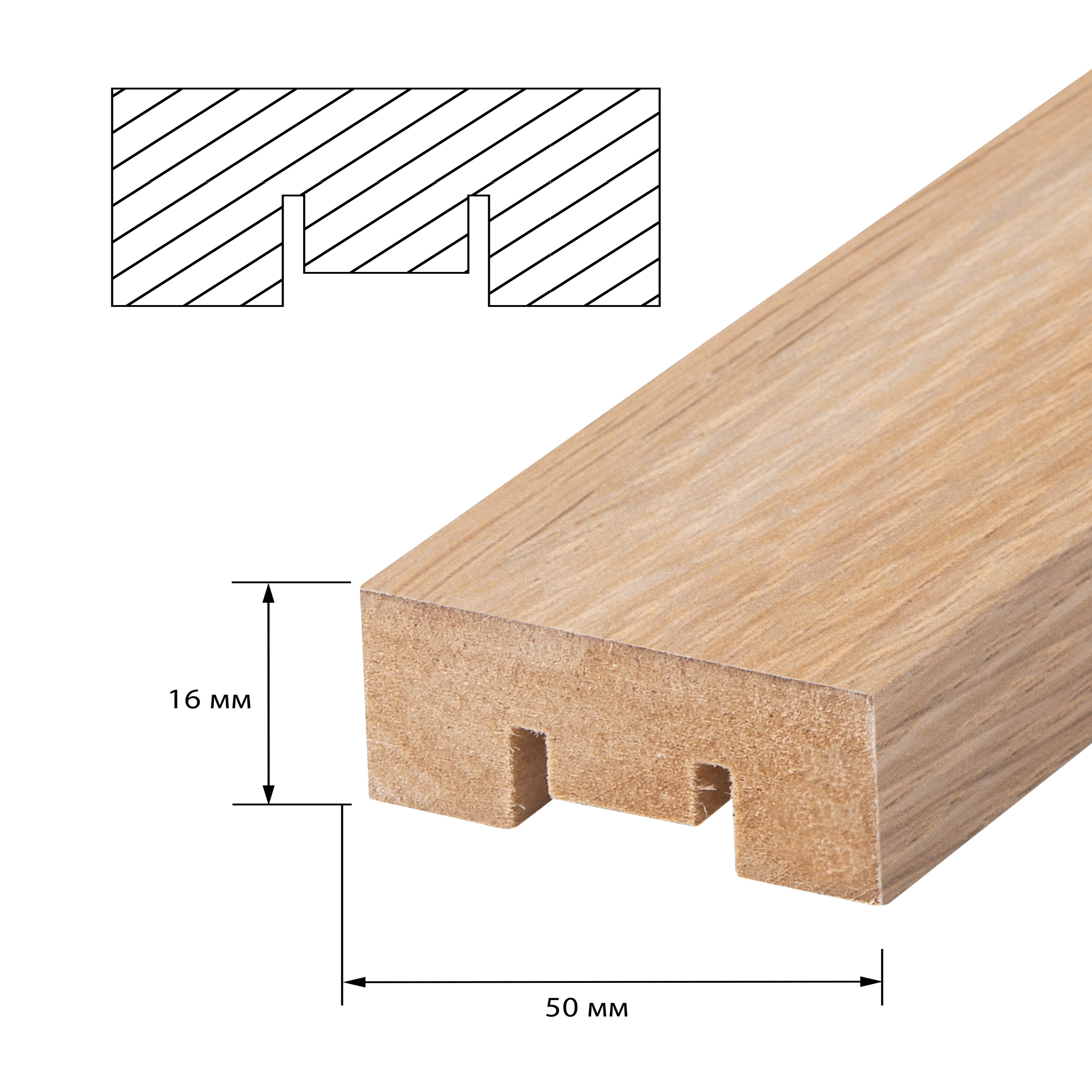 Рейка МДФ интерьерная 2700 х 50 х 16 Скандинавский Дуб