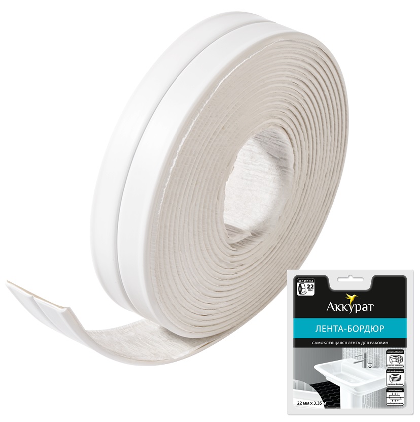 Лента бордюрная самоклеящаяся АККУРАТ 22 мм Белая