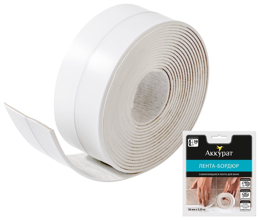 Лента бордюрная самоклеящаяся АККУРАТ 38 мм Белая