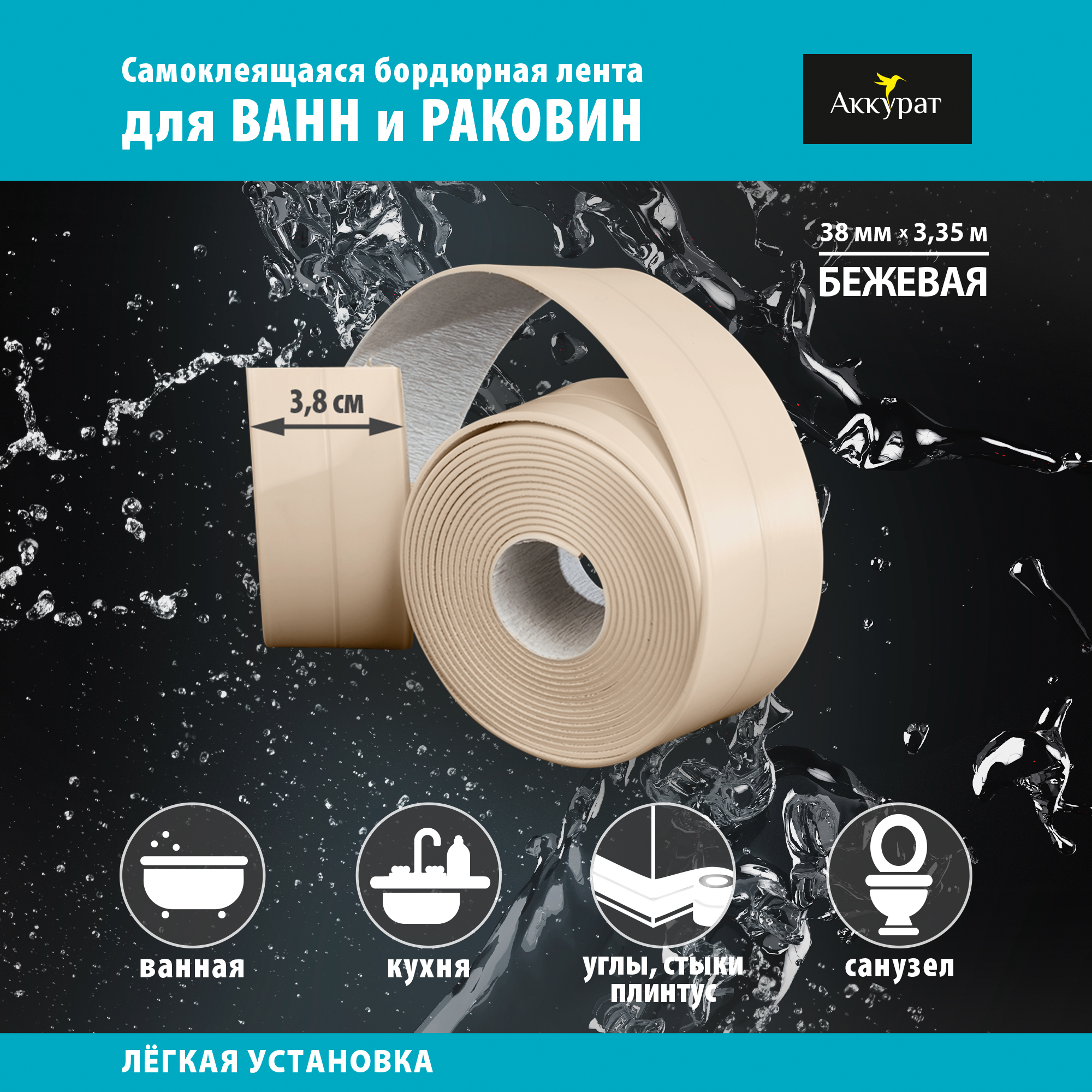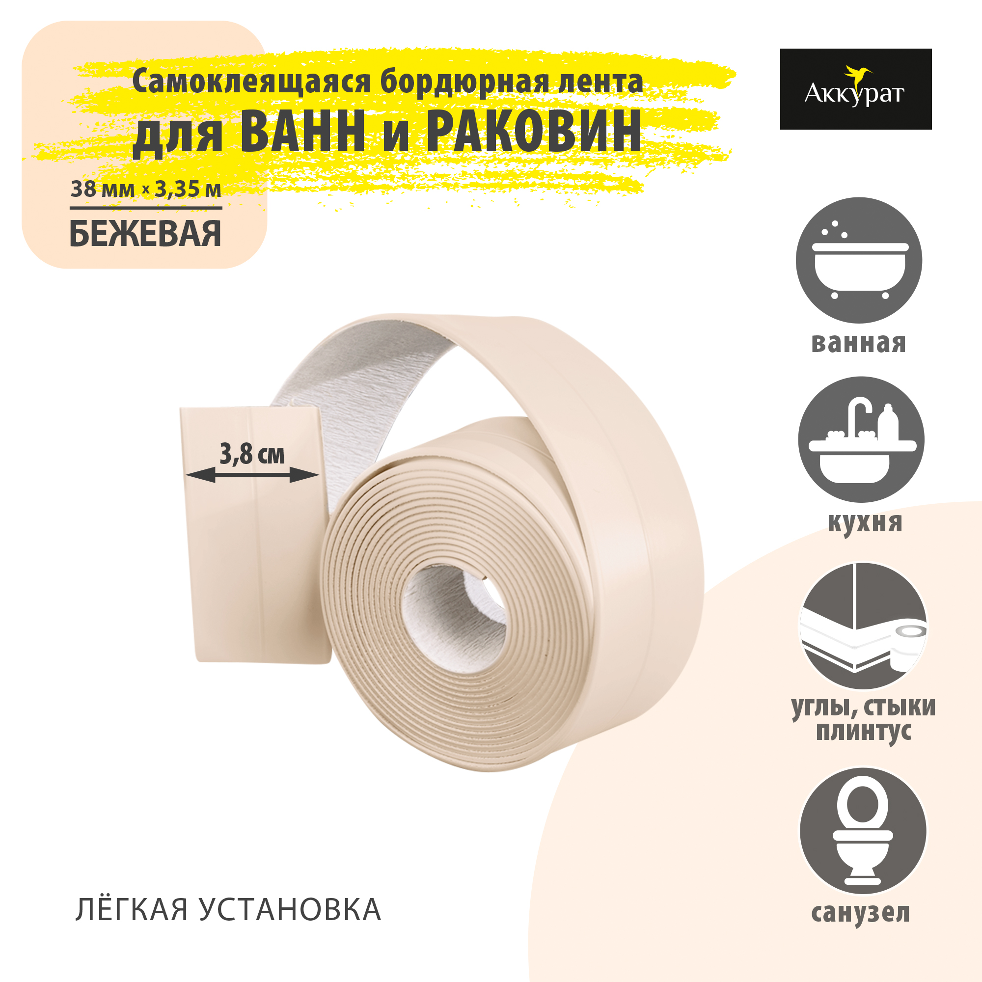 Лента бордюрная самоклеящаяся АККУРАТ 38 мм Бежевая