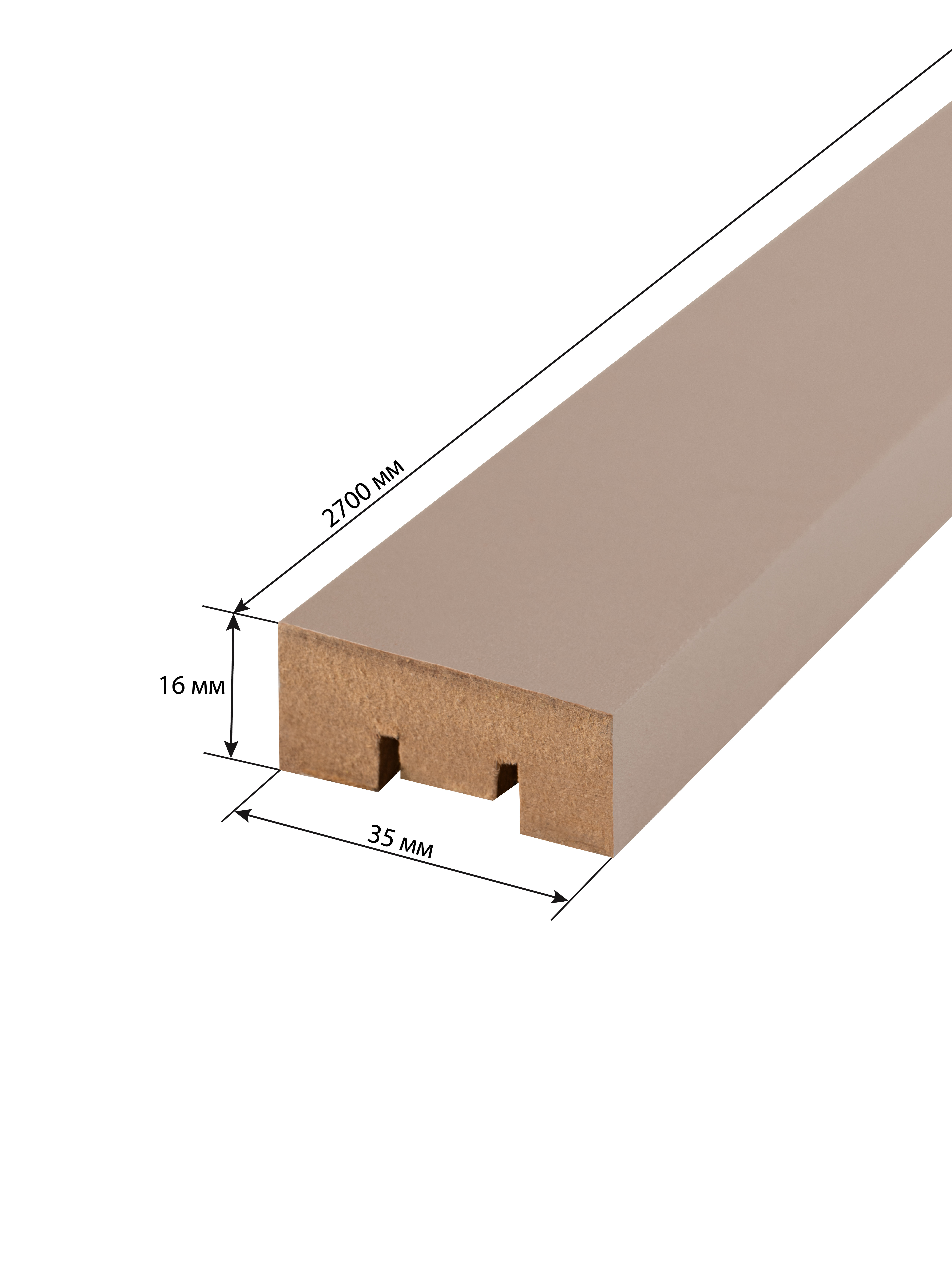 Интерьерная рейка 2700x16x35 мм, Мокко изготовлена из высококачественно МДФ, покрыты износостойкой пленкой.