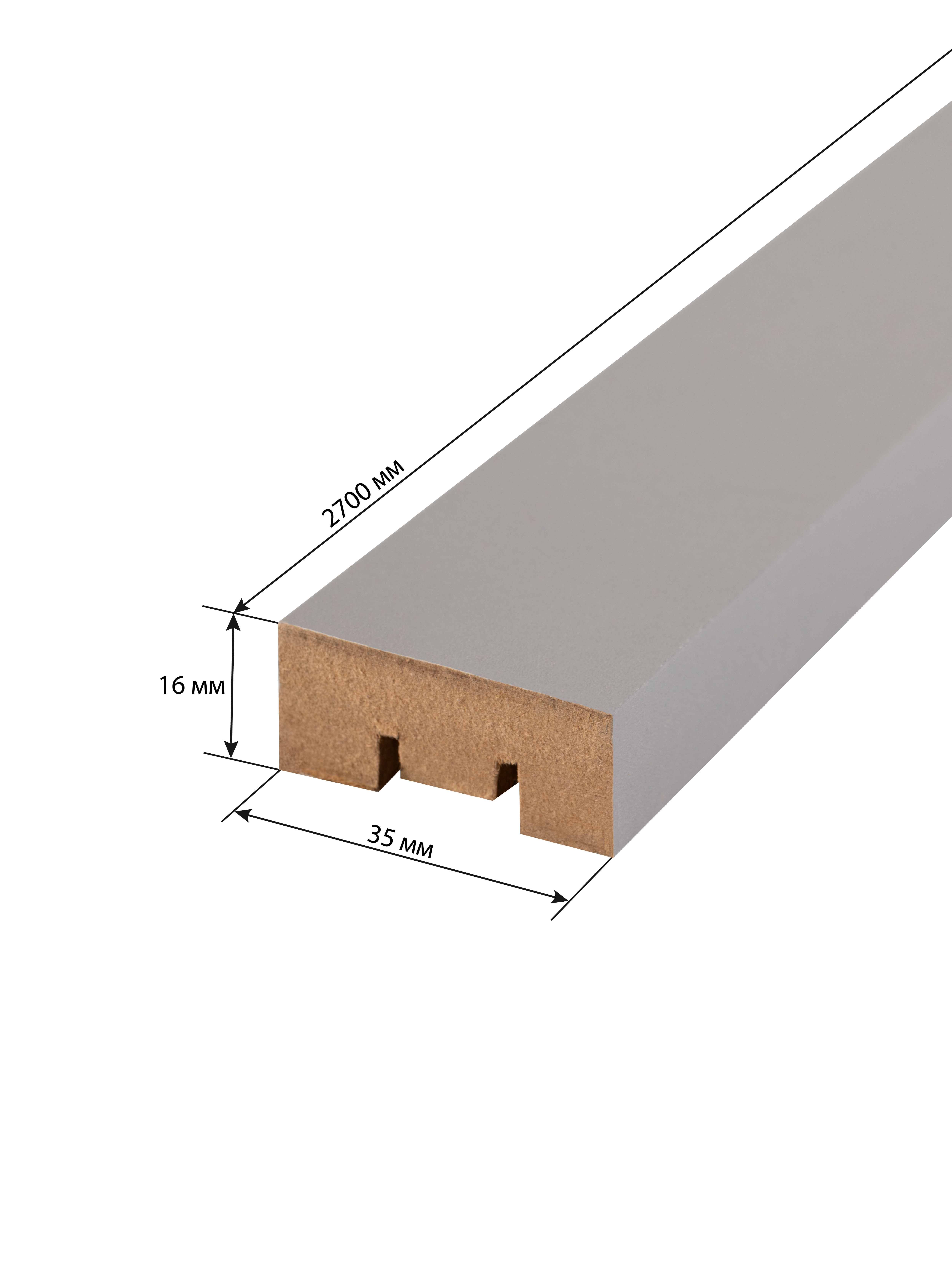 Интерьерная рейка 2700x16x35 мм, Серая изготовлена из высококачественно МДФ, покрыты износостойкой пленкой.